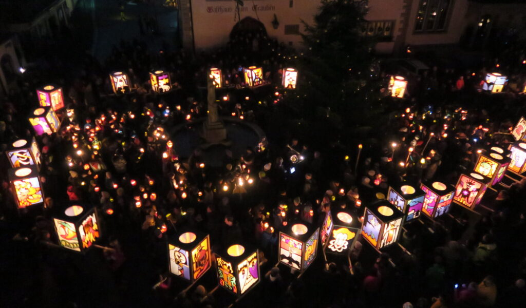 Auch mit der neuen Route wird das Bochselnacht-Lied beim Rathausbrunnen gesungen. (Bild: Stadt Weinfelden) Jedes Jahr ziehen die Schülerinnen und Schüler Weinfeldens an der Bochselnacht …