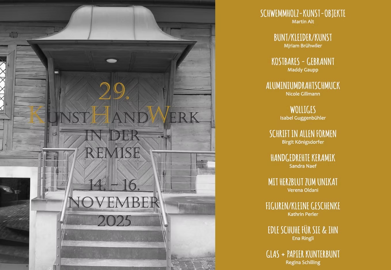 11 KunsthandwerkerInnen verzaubern die alte Remise wiederum in ein kleines Paradies und präsentieren stolz ihre Kostbarkeiten. Freitag Apéro und Live-Musik. Täglich Bistro und Wettbewerb.