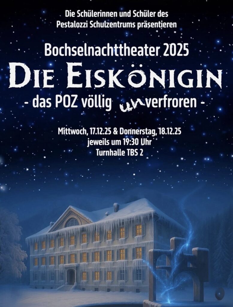 Die Schülerinnen und Schüler des Pestalozzi Schulzentrums präsentieren im Rahmen des Bohselnachttheaters 2025 das Stück «Die Eiskönigin – das POZ völlig unverfroren». Es finden zwei ...