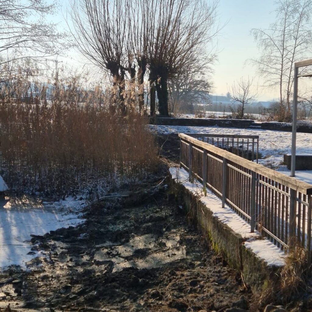 Wie das Unternehmen in einem Facebook-Beitrag mitteilt, sei das Biotop im Laufe der Jahre zunehmend verlandet, wodurch der Wasservorrat stetig abgenommen habe. In den letzten Tagen seien deshalb umfangreiche Pflege- und Instandstellungsarbeiten erfolgt – teils von Hand, teils mit der Baggerschaufel. Ziel sei es, das ökologische Gleichgewicht wiederherzustellen.