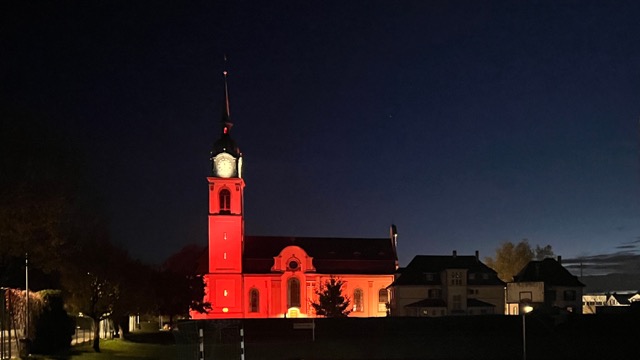 Vielleicht fragen Sie sich, weshalb die katholische Kirche in Weinfelden rot angestrahlt ist. In der Zeit vom 11. bis 19. November 2023 findet weltweit die «Red Week» statt. Die Organisation Kirche in Not macht damit auf den Missstand aufmerksam, dass 350 Millionen Christinnen und Christen weltweit verfolgt werden. Gerne beteiligen wir uns daran, auf dieses Schicksal aufmerksam zu machen.