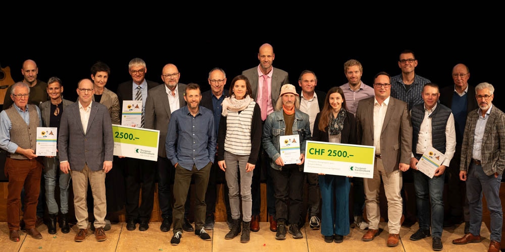 Neben der «Thurgauer Solargemeinde» zeichnete die Jury weitere sechs Projekte in den Kategorien Bildung, Energieeffizienz KMU/Gewerbe, Sanierung, Mobilität, Idee sowie Neubau aus (siehe Kasten). Darüber hinaus prämierte die Thurgauer Kantonalbank eine vorbildhafte Sanierung mit ihrem Sonderpreis. Die neun Preisträger durften an der Preisverleihung ihre Checks über 2’500 Franken entgegennehmen. Alle Wettbewerbsteilnehmenden erhielten zudem ein Geschenk. Durch den abwechslungsreichen Abend führte der Fernsehmoderator Lukas Studer, während das Vokalensemble Incantanti mit zauberhaften Stimmwelten beeindruckte. Andreas Fröhlich und Esther Elmer umrahmten die Preisverleihung mit humorvollen und musikalischen Darbietungen.