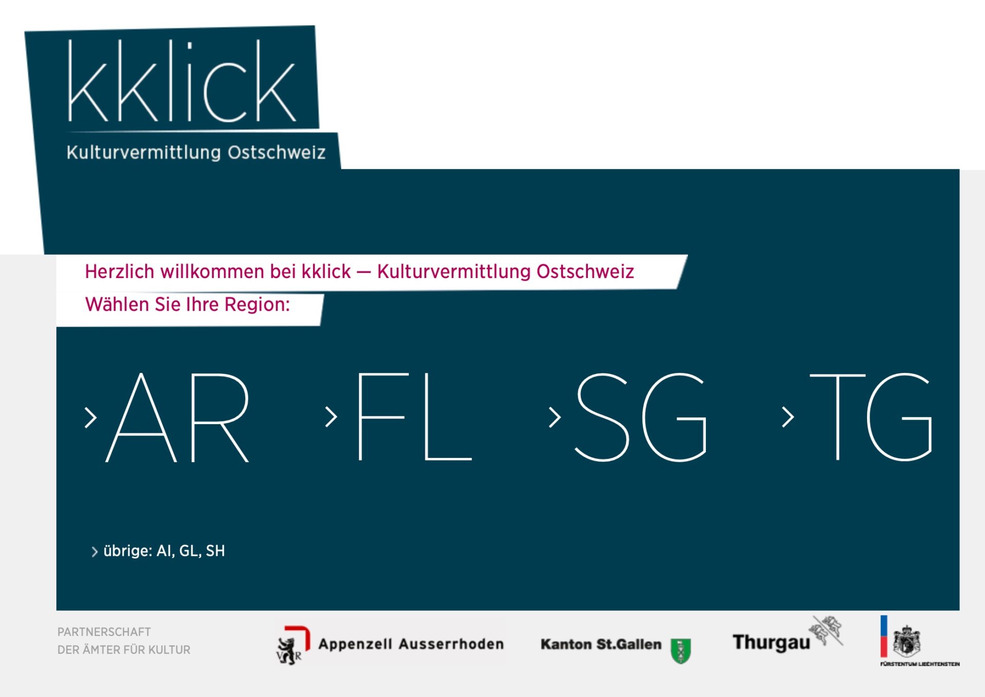 Somit besteht die Trägerschaft von «kklick» neu aus den Kantonen Appenzell Ausserrhoden, St.Gallen und Thurgau sowie dem Fürstentum Liechtenstein. Bis Ende 2024 gehörte auch der Kanton Glarus zur Trägerschaft. Er zog sich aus finanziellen Gründen zurück. Die Kantone Appenzell Ausserrhoden, St.Gallen und Thurgau begrüssen den Beitritt des Fürstentums Liechtenstein und sehen in der erweiterten Zusammenarbeit einen Mehrwert für die kulturelle Bildung in der Region.