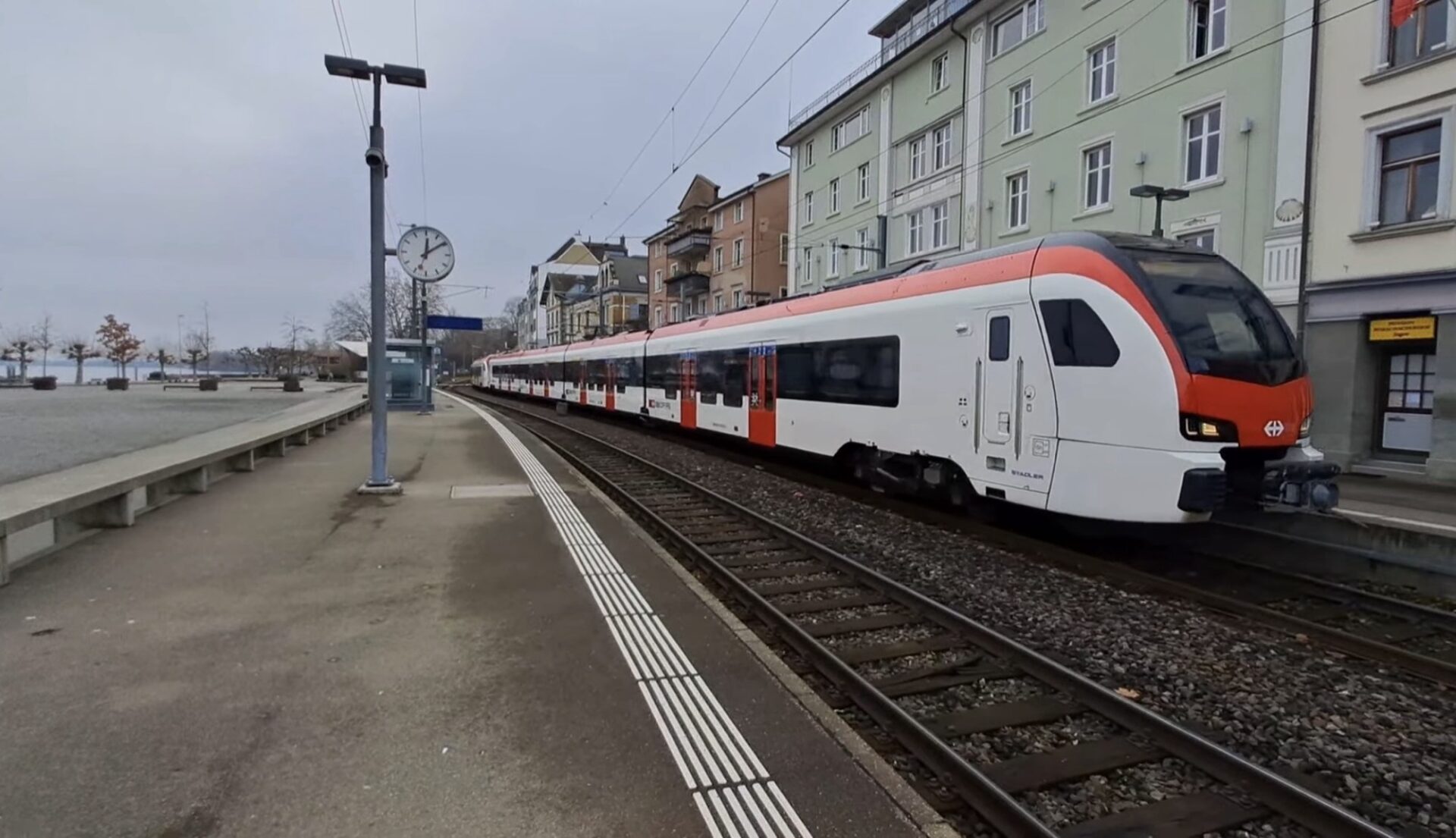 Am 02. Dezember 2025 war am Bodensee ein besonderer Zug unterwegs: Ein fabrikneuer FLIRT Evo von Stadler legte eine Testfahrt von Rorschach über Romanshorn nach Weinfelden ein. Startpunkt war der Hafen Rorschach.