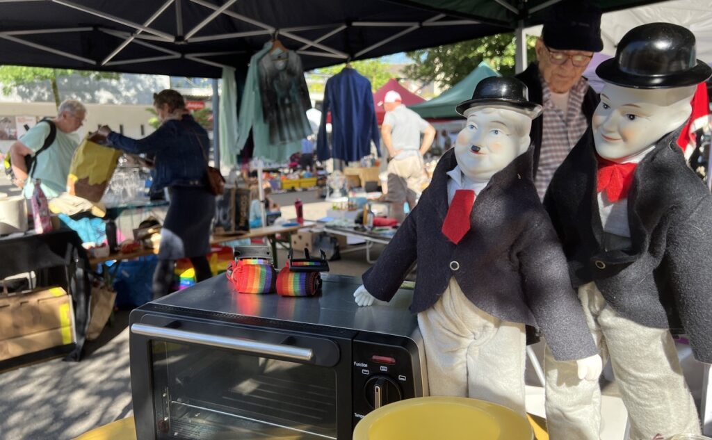 Am letzten Samstag fand auf dem Marktplatz Weinfelden der traditionsreiche Flohmarkt statt. Bei extrem hohen Temperaturen, die Verkäuferinnen und Verkäufer wie auch die Kundschaft suchten Schatten, wurde so mancher Handel heiss geführt, was sicherlich nicht nur auf das Sommerwetter zurückzuführen war.