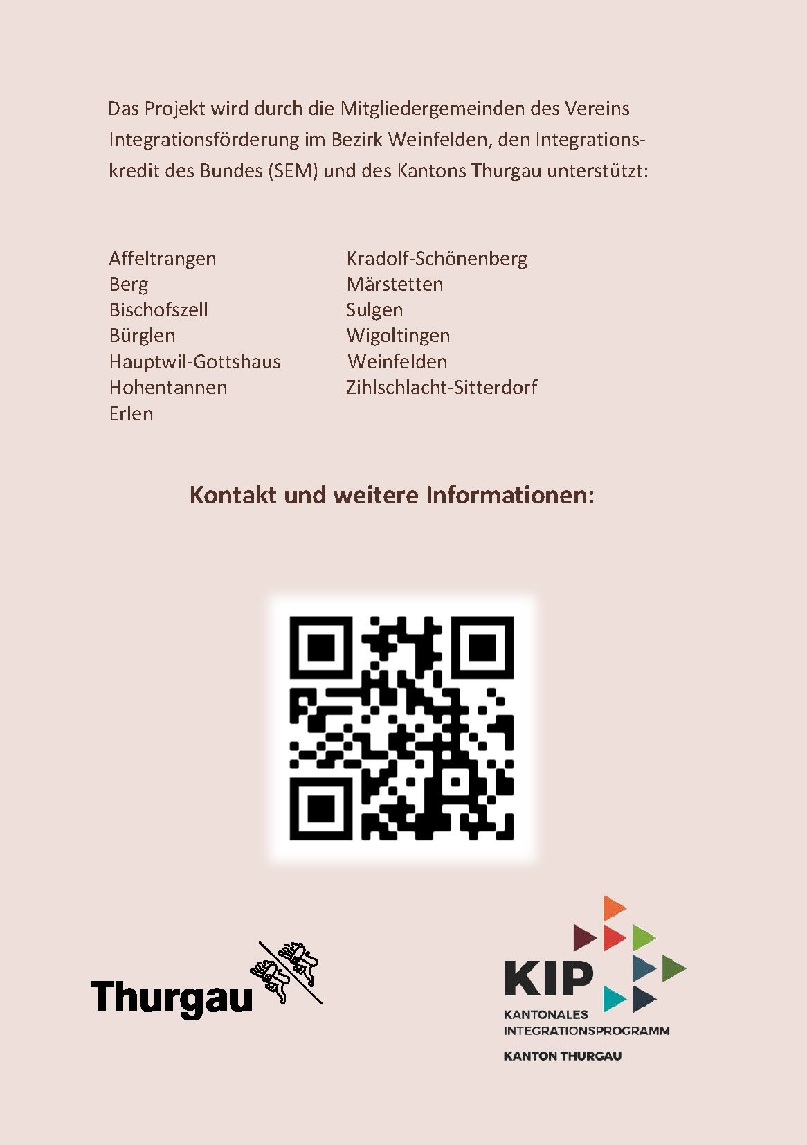 Das Projekt wird durch die Mitgliedergemeinden des Vereins Integrationsförderung im Bezirk Weinfelden sowie durch den Integrationskredit des Bundes (SEM) und des Kantons Thurgau unterstützt.