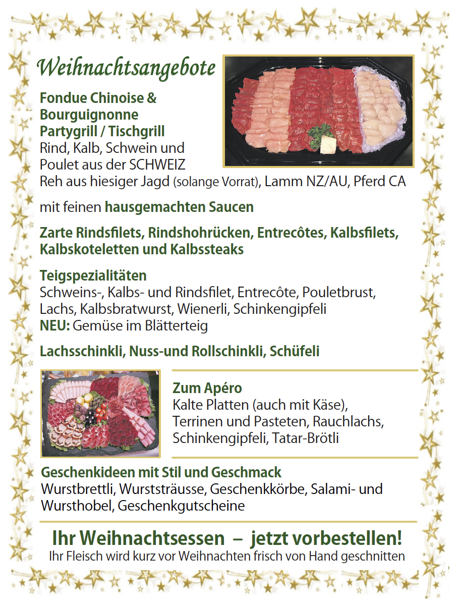 Die Arbeitszeiten des «Hirschen»-Teams sind lang, besonders vor Festtagen und an den Markttagen ist grosser Einsatz gefragt. «Das gehört dazu. Wir arbeiten gerne und freuen uns auf solche Anlässe, denn sie sind wirklich etwas Besonderes», sagt Silvia Berliat-Schmid. Auf die kommenden Festtage hin sind neben den Weihnachtsbestellungen auch Geschenkideen wie Wurststräusse, Wurstbrettli, Wursthobel und Geschenkkörbe gefragt, die nach den individuellen Wünschen der Kunden zusammengestellt werden. Die Geschenkideen sind auch auf der Homepage ersichtlich.