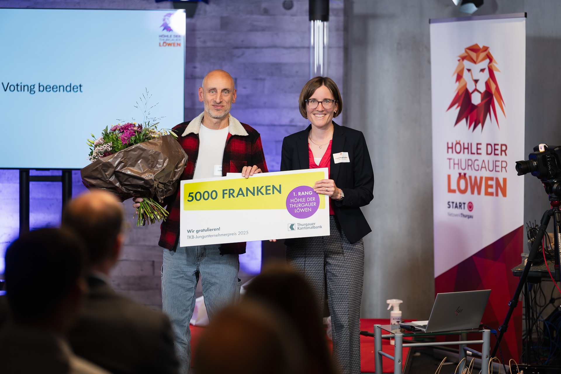 Zum Schluss hin wurde es knapp, durchgesetzt hat sich Stephan Lang mit E-SKI. Er erhielt den Thurgauer Jungunternehmerpreis im Wert von CHF 5’000, welcher von der Thurgauer Kantonalbank gesponsert und ihm von Karin Hugentobler überreicht wurde. Anschliessend ging es für Stephan Lang ins Interview mit Radio Top.