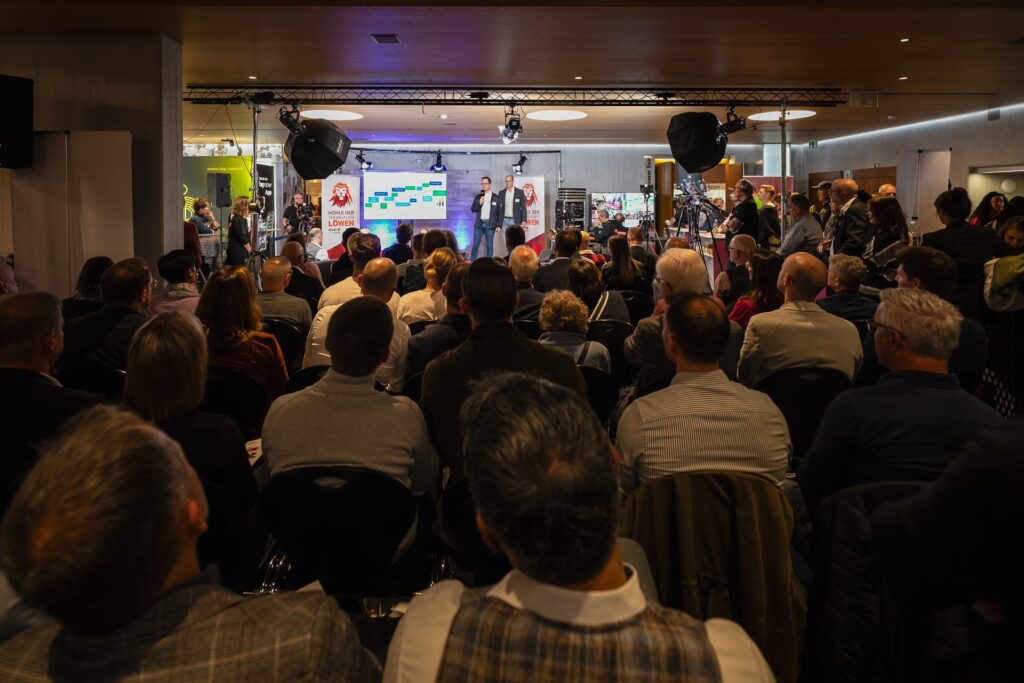 Vertreter aus der regionalen Startup- und Unternehmerszene drängten sich am vergangenen Freitag dicht an dicht vor die Bühne im Thurgauerhof in Weinfelden. Links und rechts stellten sich WEGA-Besucher dazu. Das Interesse an der ersten Ausgabe der Höhle der Thurgauer Löwen war gross und alle Plätze restlos ausgebucht.