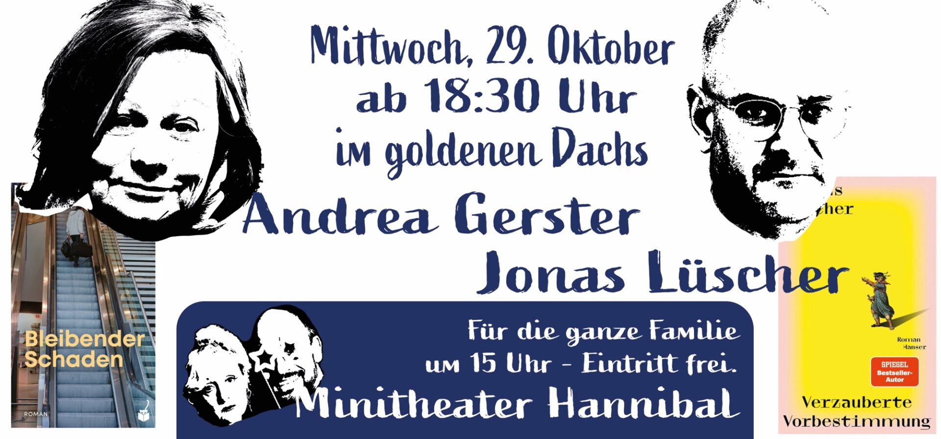 Am Abend, um 18:30 Uhr wird uns Andrea Gerster mit Ihrer Lesung über Ihren Roman „Bleibender Schaden“ bereichern. Das Buch handelt von einer Frau, die sich aus einem Leben zu befreien versucht, das sie nie wollte. Andrea Gerster war als Journalistin tätig, bevor sie anfing, literarisch zu schreiben.