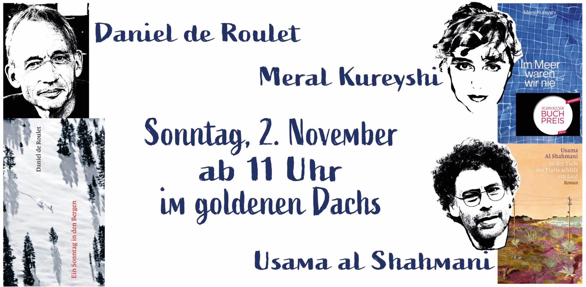 Der Sonntag, der 2. November, ist der letzte Tag der Weinfelder Buchtage 2025, und wir dürfen 3 Schriftsteller*innen empfangen.