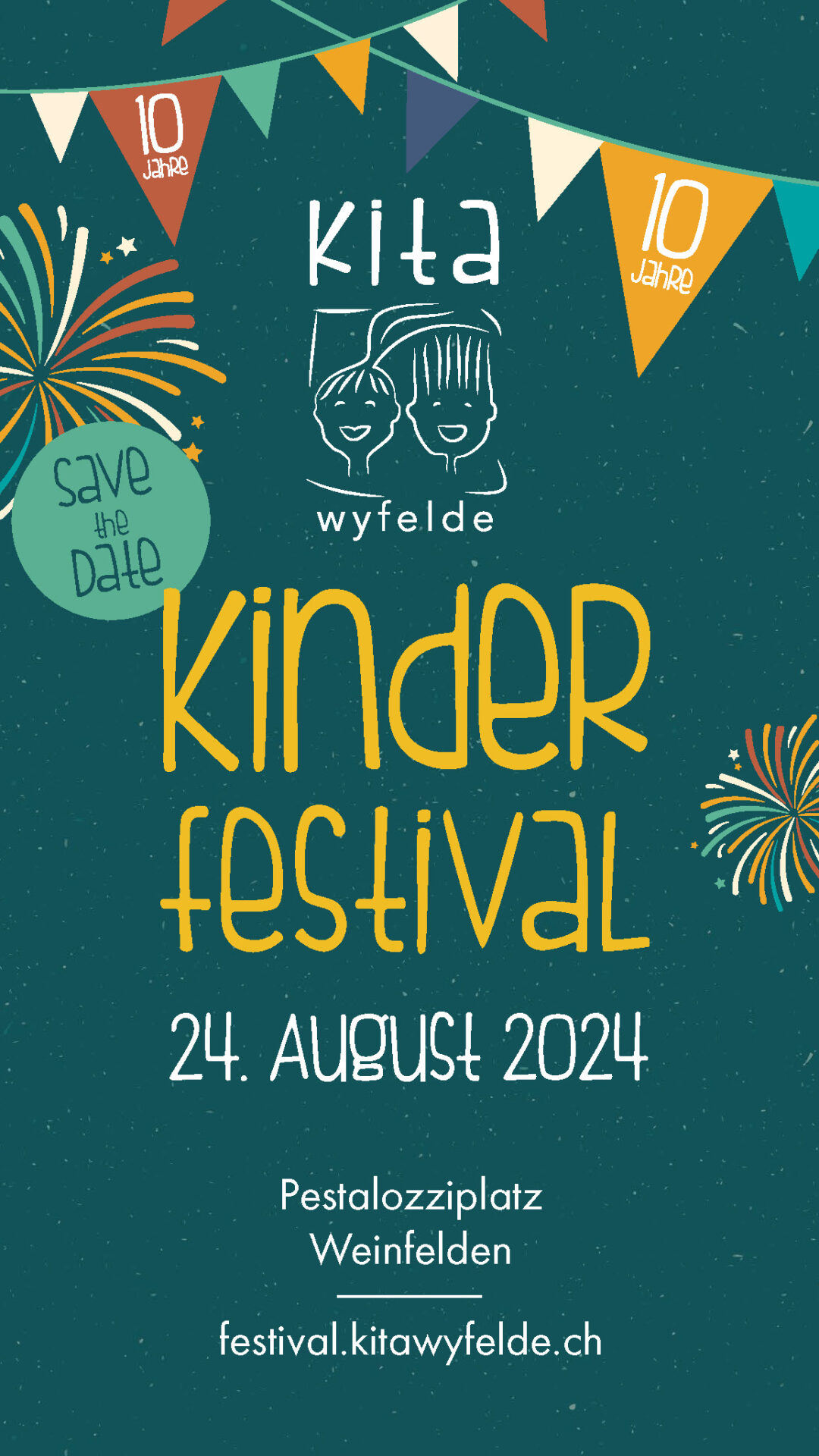 Aus diesem Anlass verwandelt sich der Pestalozzi-Platz am 24. August 2024 in ein buntes Festival für Klein und Gross. Viele Highlights bieten ein abwechslungsreiches Programm für Kinder jeden Alters. Die Kita Wyfelde und viele weitere lokale Vereine und Organisationen rund um die Lebenswelt «Kind» bieten Kinderschminken, Seilziehen, Sirupbar, Töggeliturniere und vielen weiteren Attraktionen an. Und auch für die Kleinsten stehen Wickeltisch, Stillecke, Schoppenküche und Kinderwagenparkplätze bereit. «Wirth serviert» und andere regionale Lebensmittelhändler kümmern sich um das leibliche Wohl.