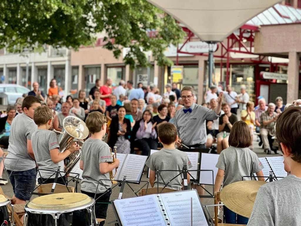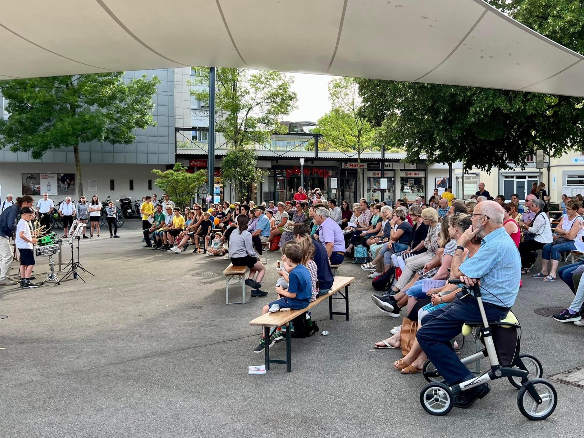 Das Gewitter vom Vorabend war schon beinahe vergessen, denn nach Blitz und Donner kommen nun die organisierten Klänge zu Ohren. Am Mittwochabend glich der Marktplatz Weinfelden einem Open-Air-Konzertsaal. Gut 80 Gäste erfreuten sich ab dem Sommerkonzert.