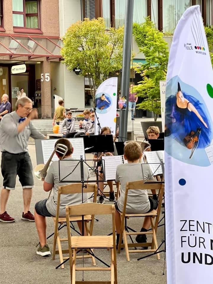 Das Sommerkonzert findet immer in Zusammenarbeit mit den Musikgesellschaften Berg, Bürglen, Mettlen, Wuppenau, der Brass Band Märwil und dem Musikverein Weinfelden statt. Aus diesen Gruppierungen spielten am Mittwochabend des 22. Juni 2022 folgende Formationen auf: Das Perkussionsensemble aus Berg und die Stickophonix, die Mini-Band Mettlen-Wuppenau unter der Leitung von Ute Hartwich, Wyfelder Holz + Blech unter der Leitung von Daniela Schümperli, Musig Kids on Thur und als krönender Abschluss Jungi-Musig on Thur unter der Leitung von Bruno Uhr.