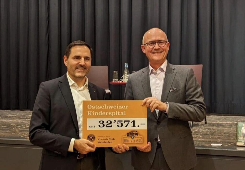 Der Kiwanis Club Weinfelden zeigt ein Herz für Kinder und spendet dem Ostschweizer Kinderspital CHF 32’571. Der Erlös stammt aus der Charity Classic 2023. Quelle: …