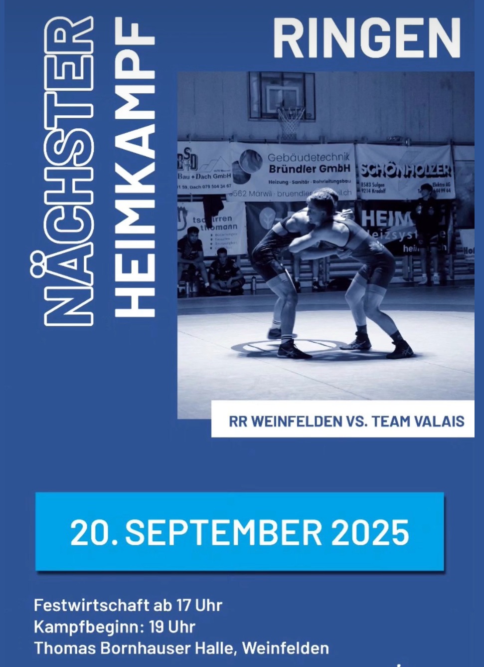 Am Samstag, 20. September 2025, steht in der Thomas Bornhauser Halle in Weinfelden ein spannender Heimkampf auf dem Programm. Der Ringerringerverein Weinfelden trifft auf das Team Valais.