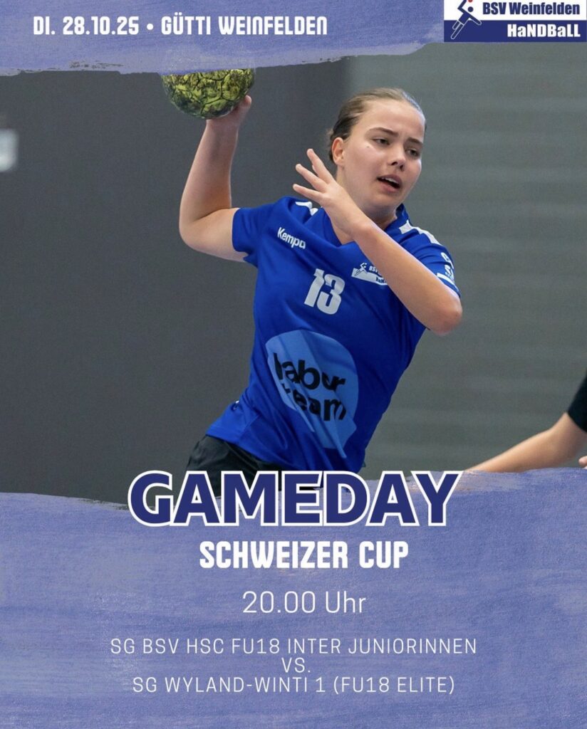 Am Dienstag, 28. Oktober 2025, trifft das U18-Interteam des BSV Weinfelden im Rahmen des Schweizer Cups auf das Eliteteam der SG Wyland-Winti. Anpfiff ist um 20.00 Uhr in der Gütti Weinfelden.