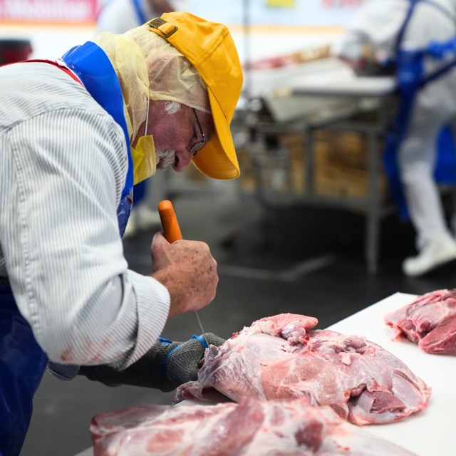 Die Herausforderung für die Teilnehmer bestand darin, Schweineschultern präzise auszubeinen. Dies erforderte das fehlerfreie Entfernen von Knochen ohne Fleischreste, das saubere Trennen von Muskelfleisch ohne Einschnitte und das Fehlen jeglicher Knorpel, und das alles in kürzester Zeit. Jeder Fehler wurde mit einem Zeitstrafpunkt belegt.