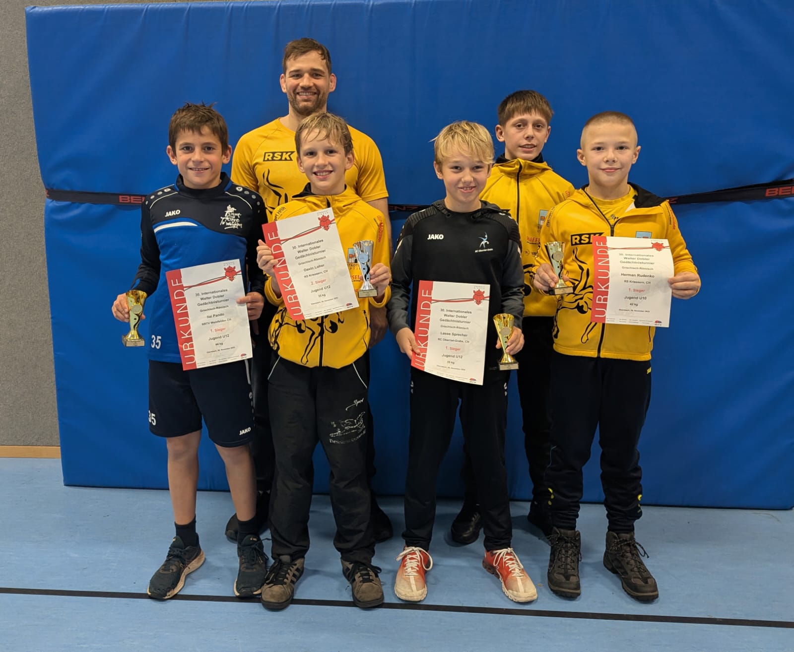 Ilai Pando holte sich am Sonntag am Greco-Turnier im deutschen Ebersbach verdient den Sieg. Er setzte sich in der U12 -44 kg souverän gegen seine 10 Konkurrenten durch und gewann verdient Gold. Er zeigte viel Kampfwillen und Einsatz. Für Ilai war es das erste Turnier mit dem RLZ Kriessern, er besucht seit zwei Monaten regelmässig das Regionalkadertraining.