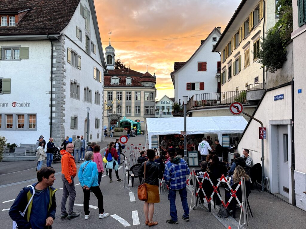 Auch diesmal boten die Strassen und Plätze ein abwechslungsreiches Bild. Stände mit regionalen Spezialitäten, offene Gastrobetriebe und kleine Attraktionen sorgten für ein einladendes Ambiente. Wer wollte, konnte durch die Gassen flanieren, Bekannte auf einen Schwatz treffen oder einfach das spätsommerliche Licht bei einem Glas Wein oder Kaffee auf sich wirken lassen. Der anfängliche Regen war rasch vergessen – geblieben ist das Gefühl eines gelungenen Spätsommerabends.
