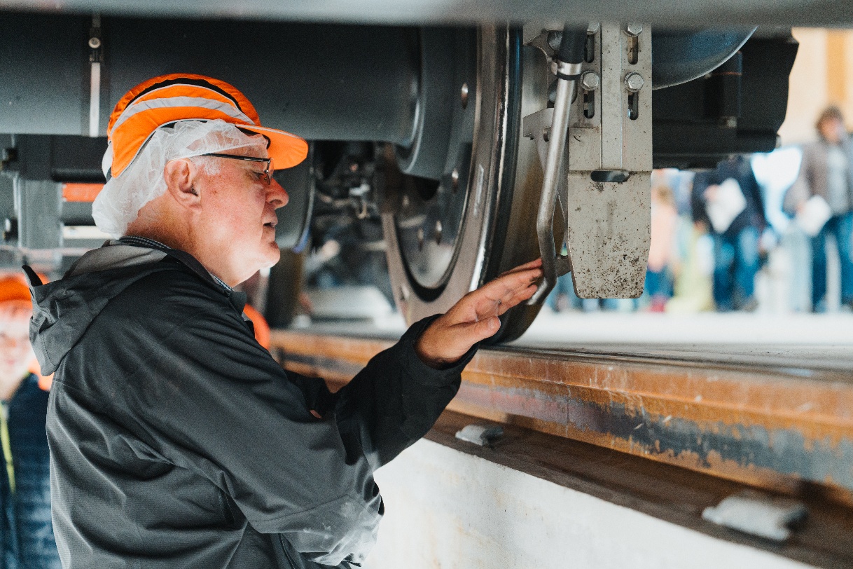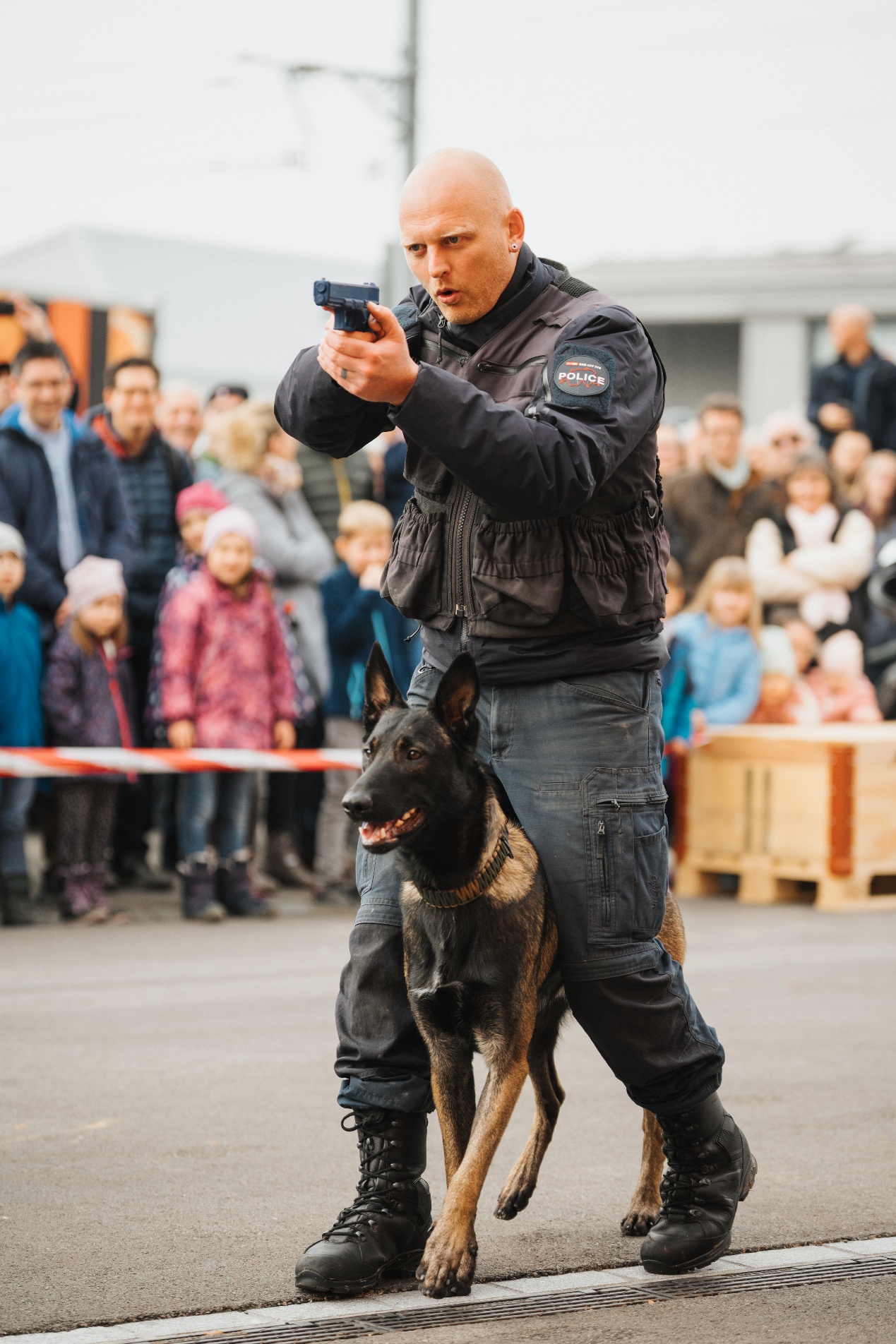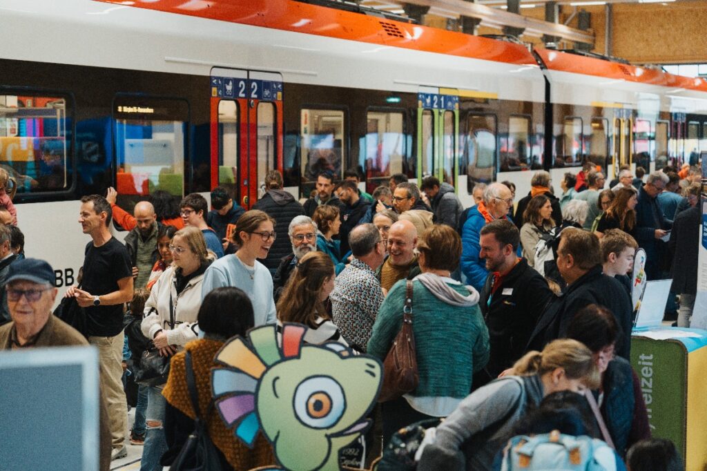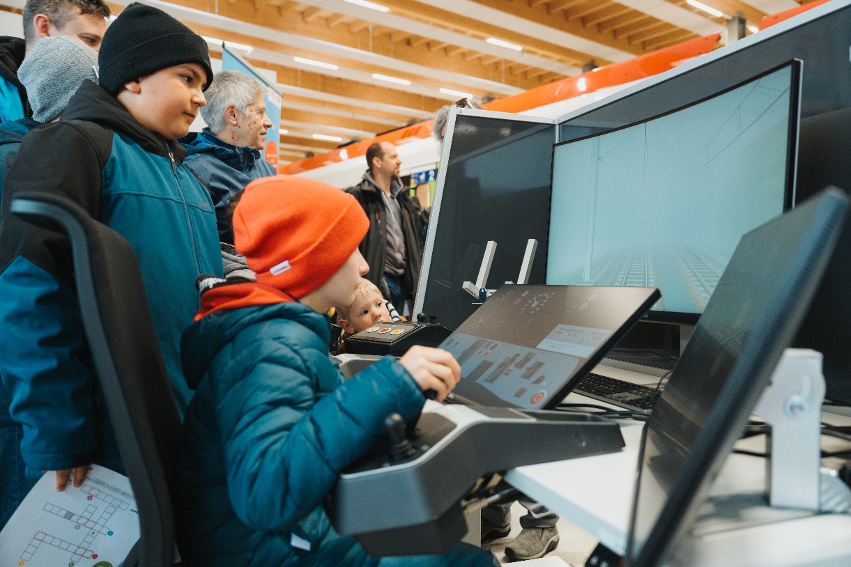 Am Tag danach kommt am Tag der offenen Tür die Bevölkerung zum Zug. Und sie erscheint nicht zu knapp: Rund 4’000 Menschen besichtigen die Anlage beim Bahnhof Weinfelden, indem sie unter den Zügen durchlaufen und von den Arbeitsplätzen direkt unter dem Hallendach von oben auf Züge herabblicken. Während die Lokpersonalausbildungs-Chefs den Jungen den Fahrsimulator zeigen, erfreut Thurbi, das Maskottchen der Regionalbahn, die Massen ausserhalb der Halle. Dort führt die SBB Transportpolizei zudem Shows mit ihren Polizeihunden auf. Auch die zwei Fotostationen, eine davon im Führerstand des Flirt Evo, sind rege in Gebrauch: Knapp 1’000 Fotos knipsen die Besucherinnen und Besucher.