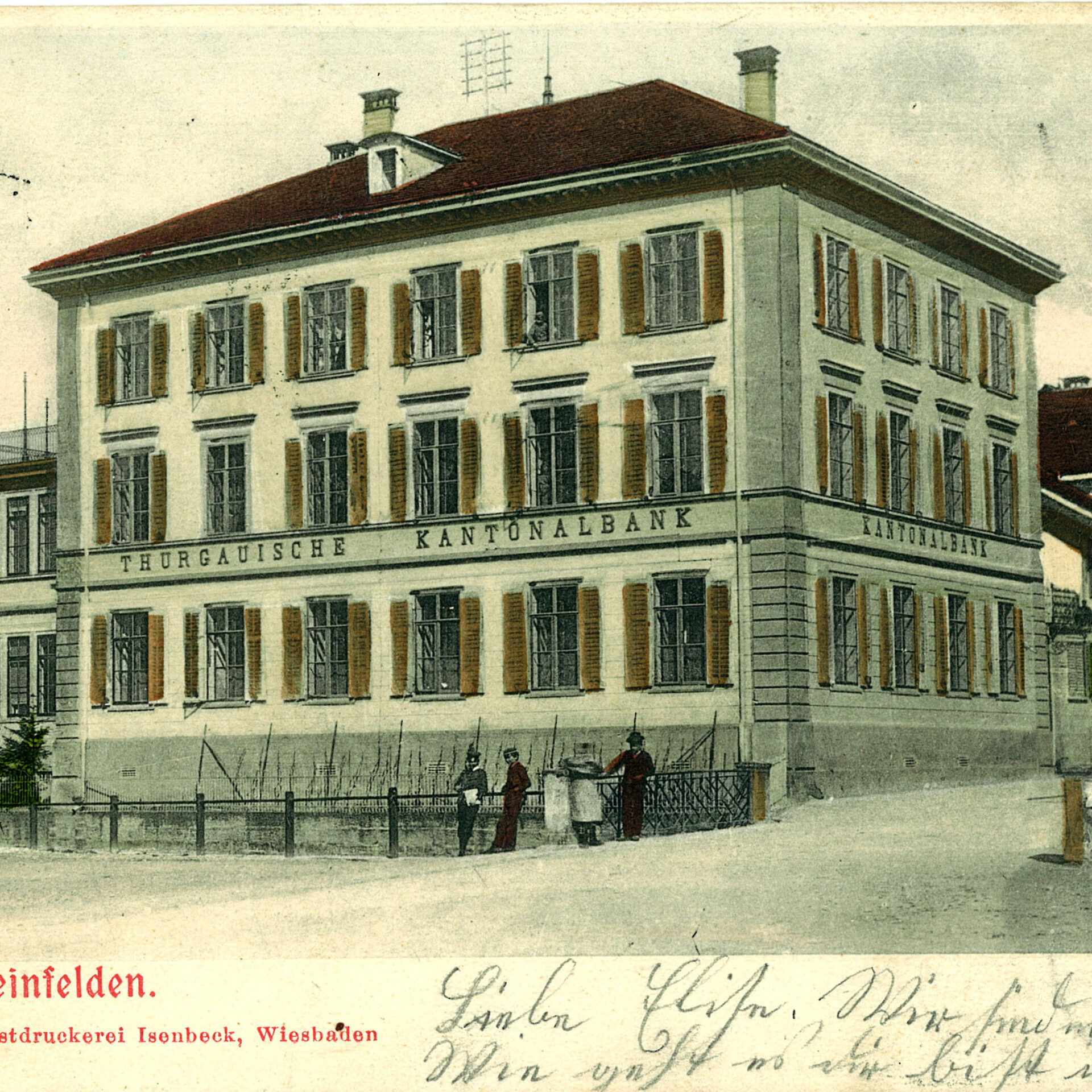 Am 1. Mai 1871 wurde die „Thurgauische Kantonalbank“ in der allerersten provisorischen Geschäftsstelle im Parterre des Rathauses eröffnet. Anderthalb Jahre vorher hatte der Grosse Rat des Kantons Thurgau mit einer einzigen Stimme Mehrheit Weinfelden zum Standort der neu zu gründenden Bank bestimmt. Das lag vor allem daran, dass die Weinfelder ein äusserst grosszügiges Angebot für einen Geschäftssitz unterbreitet hatten. Auf einem Spaziergang werfen wir einen ausführlichen Blick auf die Entwicklungen der TKB und das Geldwesen in unserer Gegend.