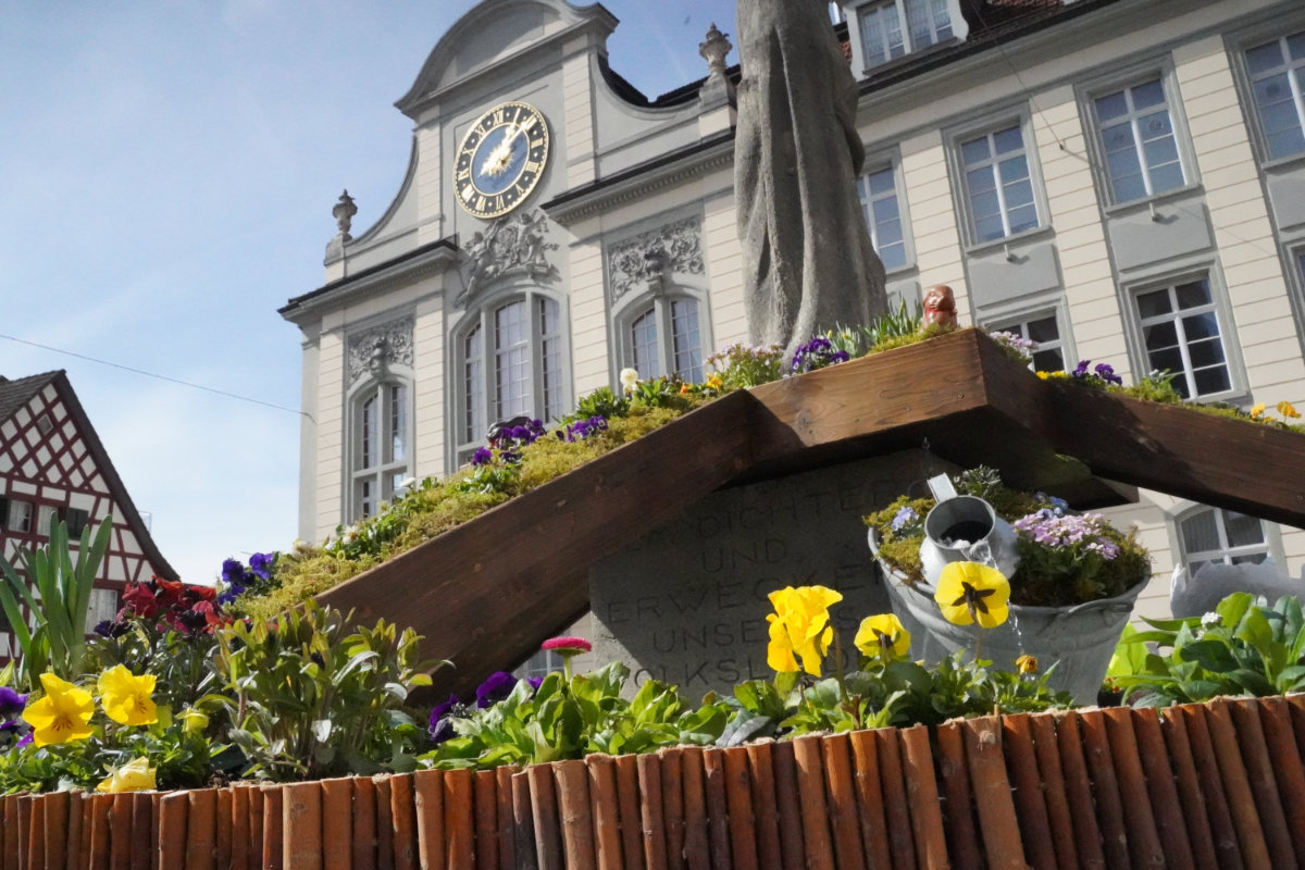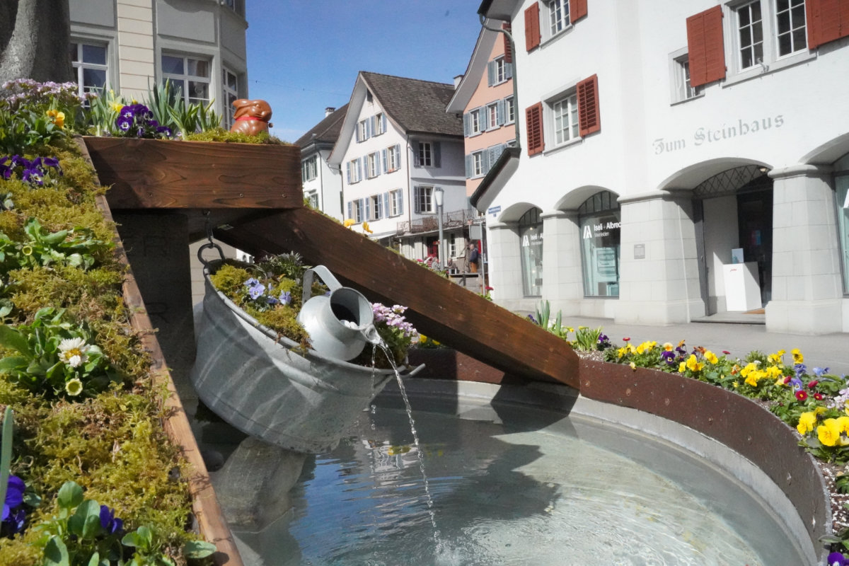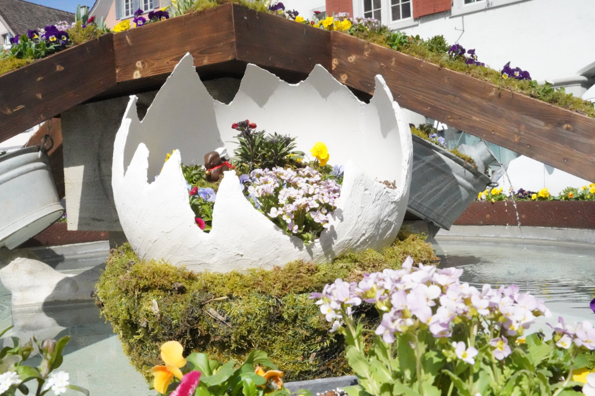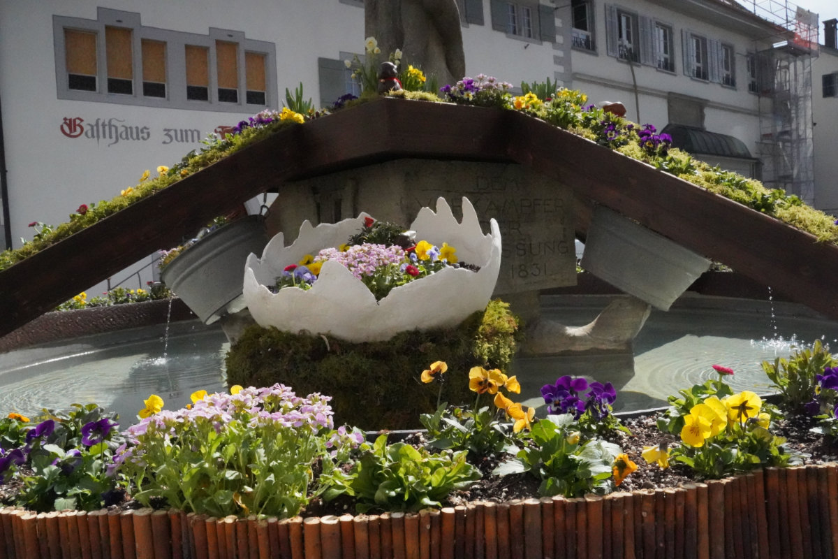 Auch in diesem Jahr hat es sich die Stadtgärtnerei Weinfelden nicht nehmen lassen, den Brunnen vor dem Rathaus mit viel Liebe zum Detail zu schmücken. Unverkennbar, es geht Richtung Ostern, entdeckt man doch rasch, das eine oder andere Sujet das darauf hinweist. Speziell, und das muss man mit den eigenen Augen gesehen haben, sind die speziell in Szenen gesetzten Wasserzuläufe.